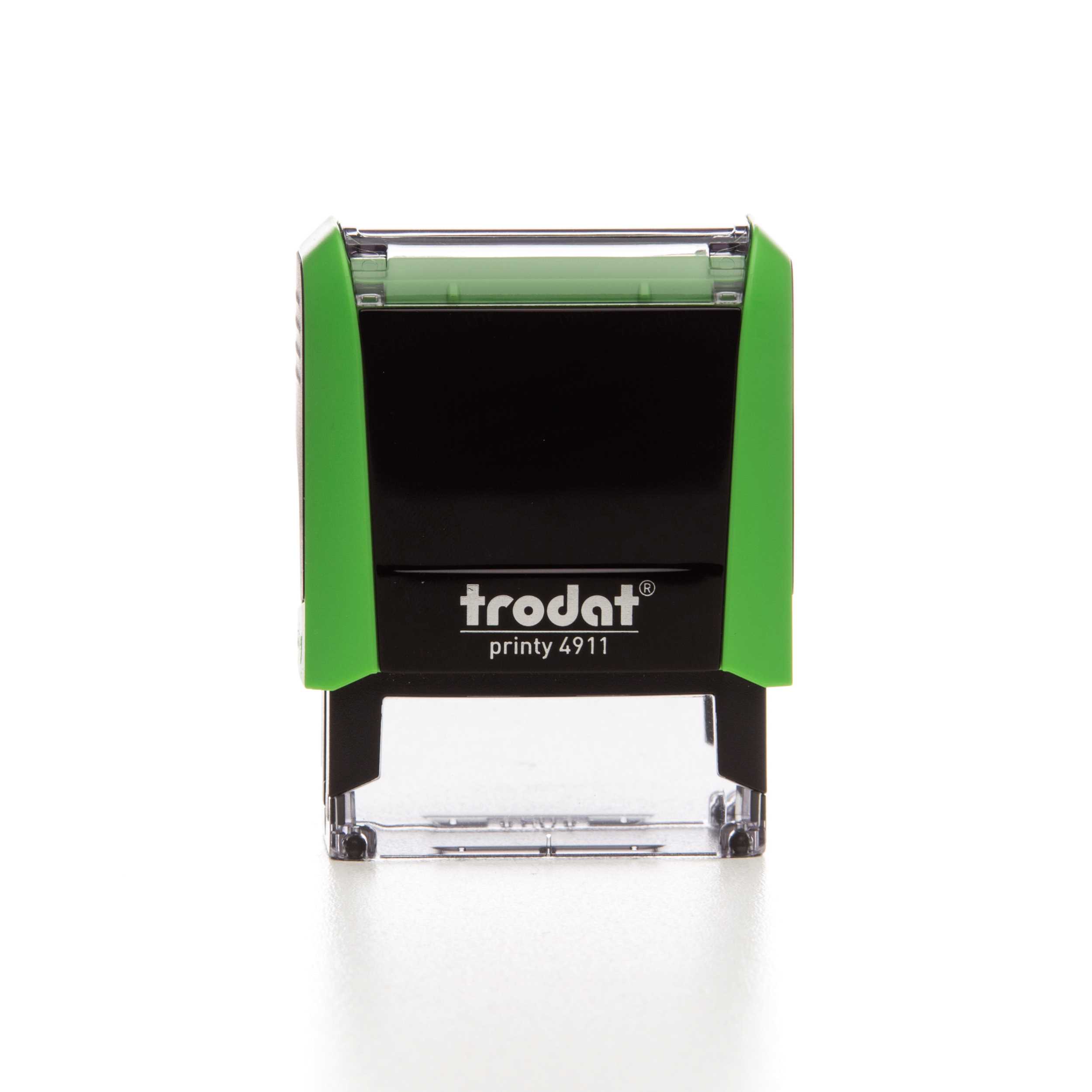 A janela de visualização translúcida do trodat 4911 possibilita o posicionamento exato da impressão, os cantos inferiores transparentes permitem um alinhamento preciso no documento;